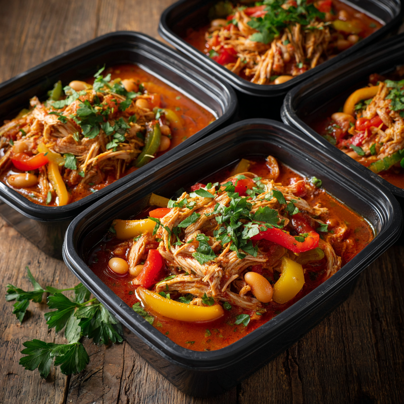These recipes range from Mediterranean-inspired chicken with olives and tomatoes to hearty beef chili loaded with beans, from Asian-style ginger turkey to Mexican shredded beef that's perfect for taco night. You'll find creamy white chicken variations, robust Italian meat sauces, warming curries, and savory pot roasts. Each one delivers 25-40 grams of protein per serving and stays fresh all week long.