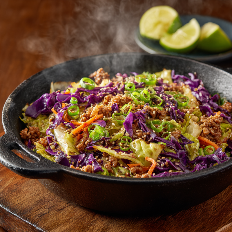 Picture this: a sizzling skillet arrives at the dinner table, steam rising from a colorful mound of tender cabbage, savory ground meat, and aromatic vegetables glistening with a glossy sauce. The fragrance alone—ginger, garlic, and toasted sesame—fills the room and draws everyone closer. Someone inevitably asks, "What is that?" and you get to answer with pride: it's an egg roll in a bowl, and yes, it tastes exactly like the crispy appetizer everyone loves, minus the deep-frying and the wait.