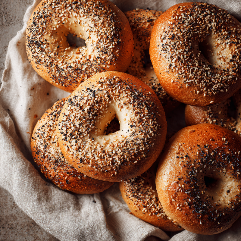- Toppings of choice: sesame seeds, poppy seeds, coarse salt, or everything bagel seasoning