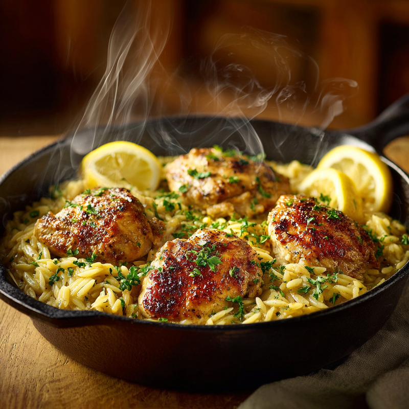 A bright, flavorful one-pan meal featuring tender chicken and creamy orzo cooked in lemony broth. Ready in just 35 minutes with minimal cleanup.