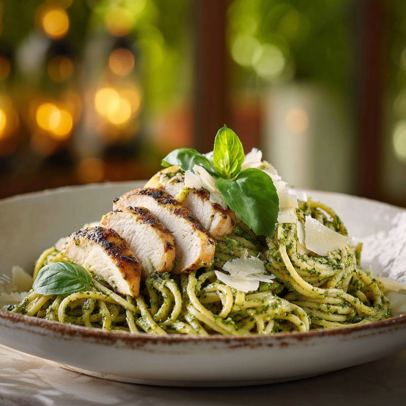Pesto alla Genovese has been gracing Italian tables since the 16th century, originating in the Liguria region where sweet Genovese basil grows in abundance. The traditional preparation involves crushing basil, garlic, pine nuts, Parmigiano-Reggiano, and generous amounts of olive oil in a marble mortar with a wooden pestle. When Italian immigrants brought this vibrant sauce to other parts of the world, home cooks began adapting it to local ingredients and dietary preferences, adding proteins like chicken to transform it from a simple pasta course into a complete meal.