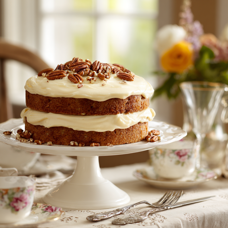 A luxurious butter cake with cream cheese frosting and toasted pecans, inspired by the legendary department store recipe. Tender, moist, and perfectly balanced between sweet and tangy.
