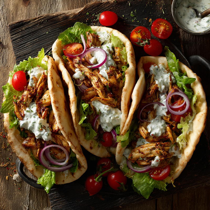 Tender, flavorful Greek-spiced chicken slow cooked to perfection and served in warm flatbread with fresh vegetables and creamy cucumber sauce. An easy, hands-off crockpot dinner with authentic Mediterranean flavors.