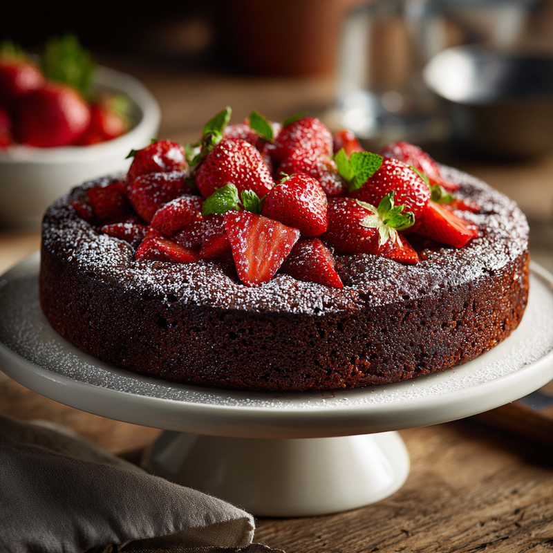 A moist, tender chocolate cake studded with fresh strawberries that combines rich cocoa with bright fruit flavors. Ready in 45 minutes with simple pantry ingredients.