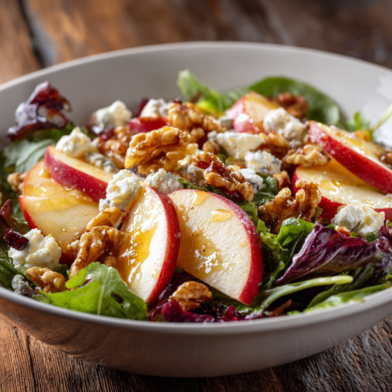 A fresh, vibrant salad combining crisp Honeycrisp apples, tangy feta cheese, toasted nuts, and mixed greens with a honey vinaigrette. Perfect for gatherings, weeknight dinners, or meal prep.