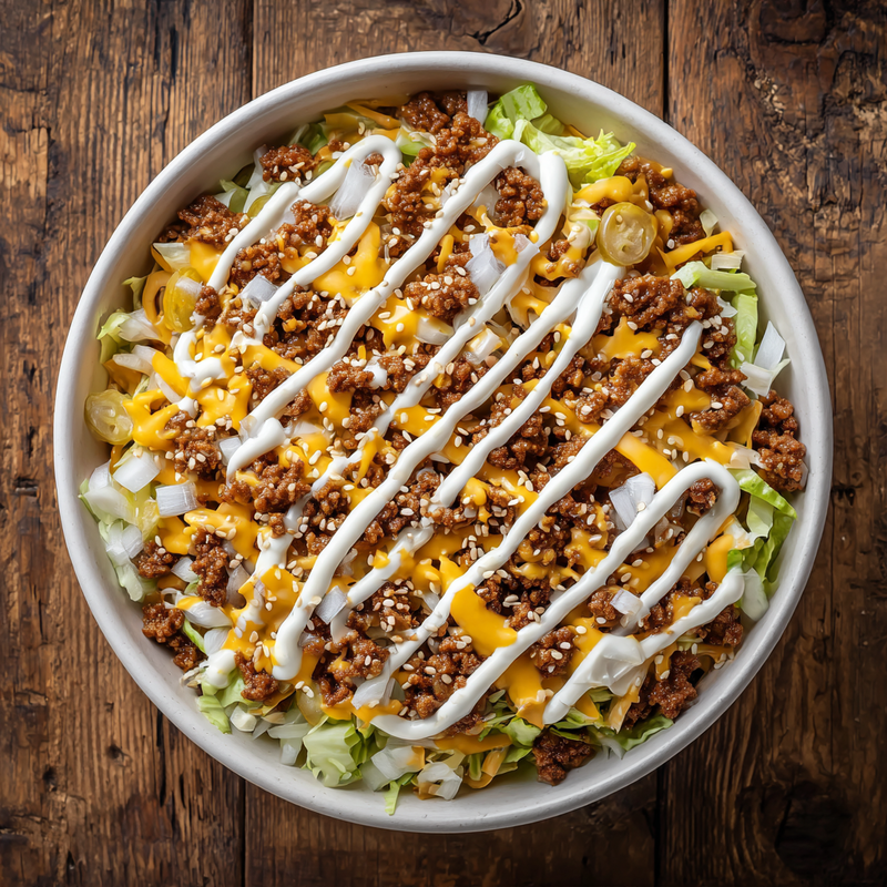It's a Protein Powerhouse — Each serving of this Big Mac Bowl Recipe packs approximately 35-40 grams of protein, making it ideal for anyone focused on muscle building, recovery, or simply staying satisfied for hours. The ground beef provides complete protein with all essential amino acids, while the cheese adds even more. Unlike carb-heavy meals that leave you hungry an hour later, this bowl keeps you genuinely full and energized.