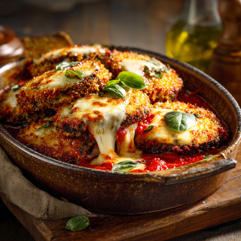 Properly cooked eggplant should be completely tender when pierced with a fork, with no resistance in the center. The flesh should be creamy and almost custard-like in texture, not spongy or firm. During the initial baking of the breaded slices, the coating should be golden brown and crispy while the interior feels soft when gently pressed. After the final bake with sauce and cheese, the entire dish should be bubbly around the edges, and a knife inserted in the center should slide through easily without meeting any firm resistance.
