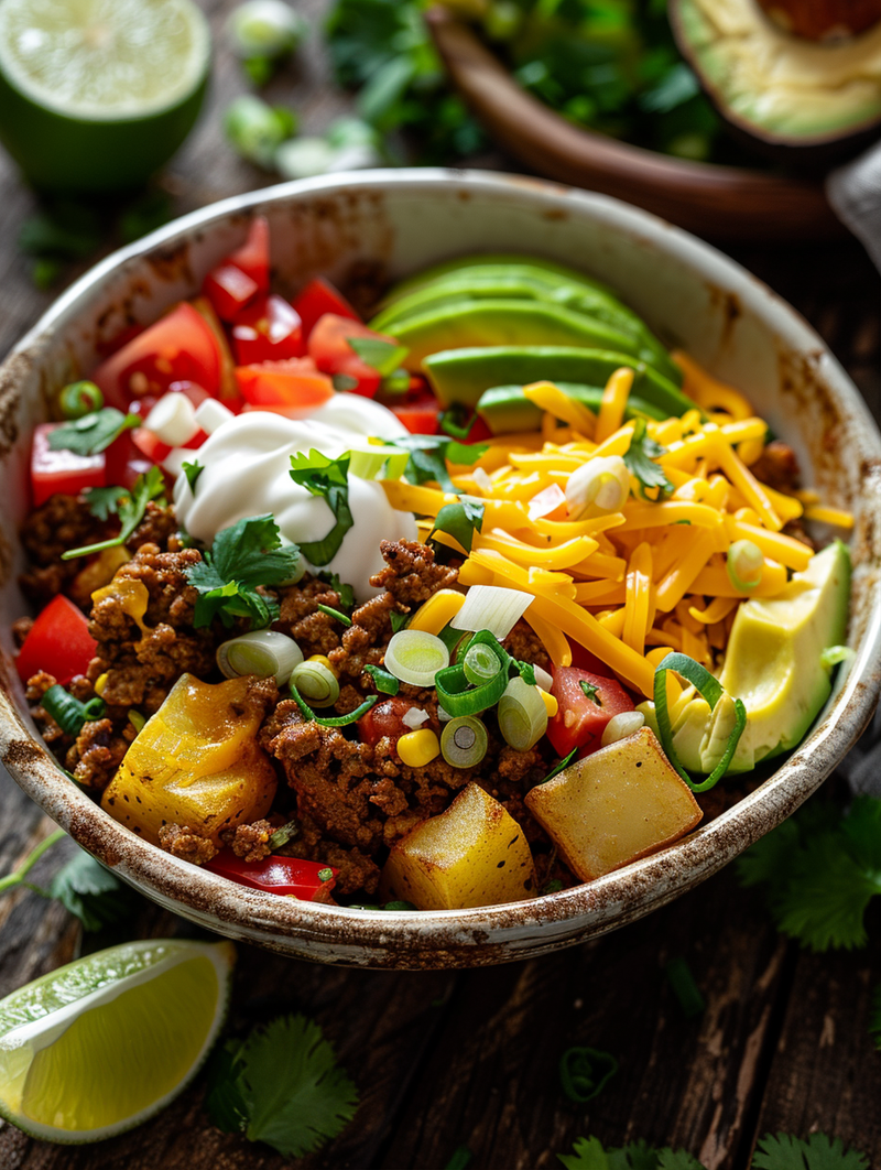 There's something incredibly satisfying about a bowl meal that brings together crispy potatoes, savory seasoned protein, and all your favorite toppings in one glorious dish. The Loaded Potato Taco Bowl has become my absolute go-to recipe when I need something hearty, nourishing, and packed with protein that can fuel my family through busy weekdays. Picture this: golden, crispy potato cubes forming the perfect base, topped with perfectly seasoned ground turkey or beef, fresh vegetables, creamy avocado, and a drizzle of tangy sauce that brings everything together. I first created this Loaded Potato Taco Bowl during a particularly hectic month when I was looking for meals I could prep ahead and customize for everyone's preferences. My teenagers devoured it, my husband declared it restaurant-worthy, and I loved how it checked all the boxes: protein-rich, vegetable-packed, budget-friendly, and absolutely delicious. What makes this recipe truly special is its versatility and staying power. Whether you're meal prepping for the week, feeding a hungry family on a weeknight, or looking for a satisfying dish that uses pantry staples, this Loaded Potato Taco Bowl delivers on every front. In this post, I'll walk you through everything you need to know to create this protein-packed masterpiece, from selecting the right ingredients to mastering the perfect crispy potato technique, plus storage tips that make meal prep a breeze. Trust me, once you make this bowl, it'll become a regular rotation in your kitchen.