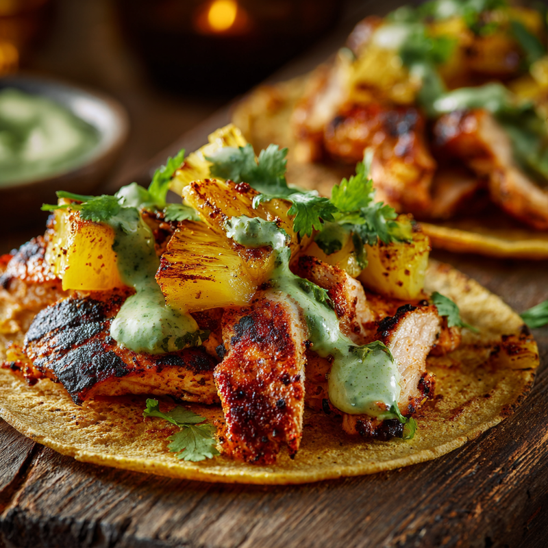 Tender spiced chicken paired with caramelized pineapple and cooling jalapeño basil ranch creates the ultimate sweet-heat taco experience perfect for any gathering.